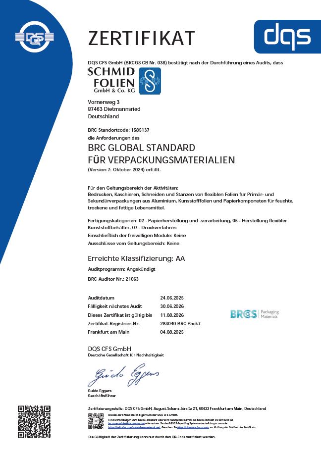 Als Hersteller von Primärverpackungen für die Nahrungsmittelindustrie wissen wir um diesen wichtigen Aspekt und achten auf ein durchgängig hohes Qualitätsniveau sowie die exakte Einhaltung aller Hygienevorschriften.